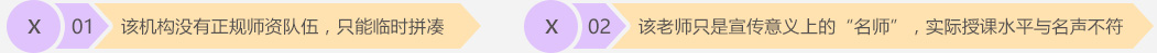 现在许多培训机构存在这样一种猫腻:以一线名师进行宣传,给学员营造出名师全程授课的错觉,而实际上这些名师只是单纯发挥宣传作用,实际授课教师往往是“三弱”教师(经验弱、实力弱、成效弱),或者名师只是象征性来讲一次课,之后就再无踪影。
