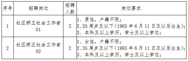 因实际工作需要,拟面向社会公开招聘社区矫正社会工作者,现将有关事项公告如下:
