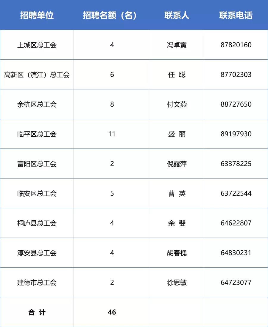 根据工会工作需要,今年我市共招聘社会化职业化工会工作者46名,具体招聘单位和名额如下: