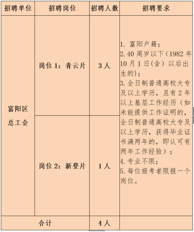 3、富阳户籍,40周岁以下(1982年10月1日(含)以后出生的)。品貌端正,身体健康。
