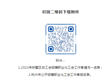 因工作需要,拱墅区总工会现面向社会公开招聘社会化职业化工会工作者。根据浙江省总工会《关于印发<浙江省社会化职业化工会工作者管理办法><浙江省社会化职业化工会工作者招聘实施细则>的通知》(浙总工发〔2023〕40号),现将有关事项公告如下: