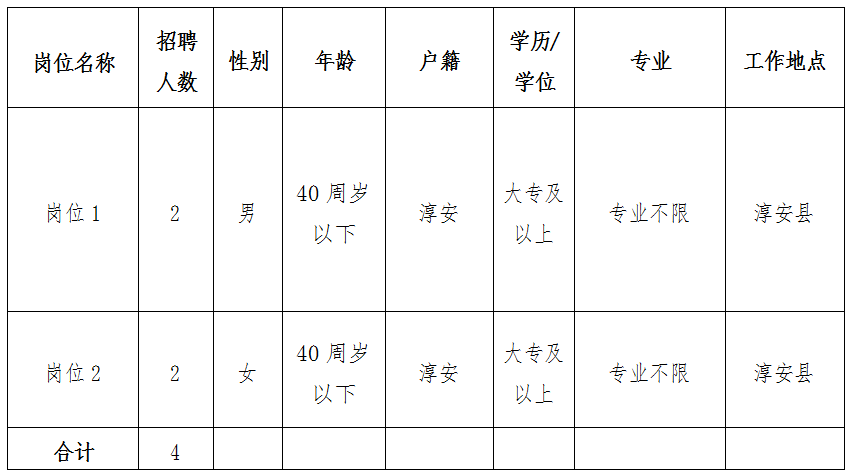 本次招聘推出2个工会工作者岗位,计划招聘专职工会工作者4名。各招聘单位、岗位、人数、具体条件及其他情况详见《2023年淳安县总工会招聘社会化职业化工会工作者情况一览表》(附件1)。通过资格初审人数不足招聘岗位计划数3倍的岗位,不开考或酌情核减招聘计划。